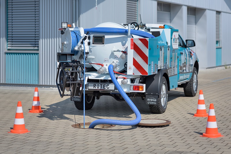 Dieses Saug- und Spülfahrzeug - hier am Beispiel Ford Ranger mit Allrad-Antrieb - ausgestattet mit TV-Inspektionstechnik und Hochdruckspüler, ist ein hilfreicher Begleiter für den Industriebereich und aufgrund seiner besonderen Maße auch ideal für Tiefgaragen-Einsätze geeignet.