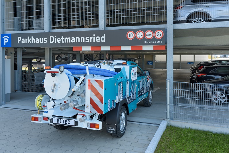 Das Saug- und Spülfahrzeug Hydrocity ist ein hilfreicher Begleiter für den Industriebereich und ideal für schnelle Einsätze in Tiefgaragen und anderen beengten Orten.